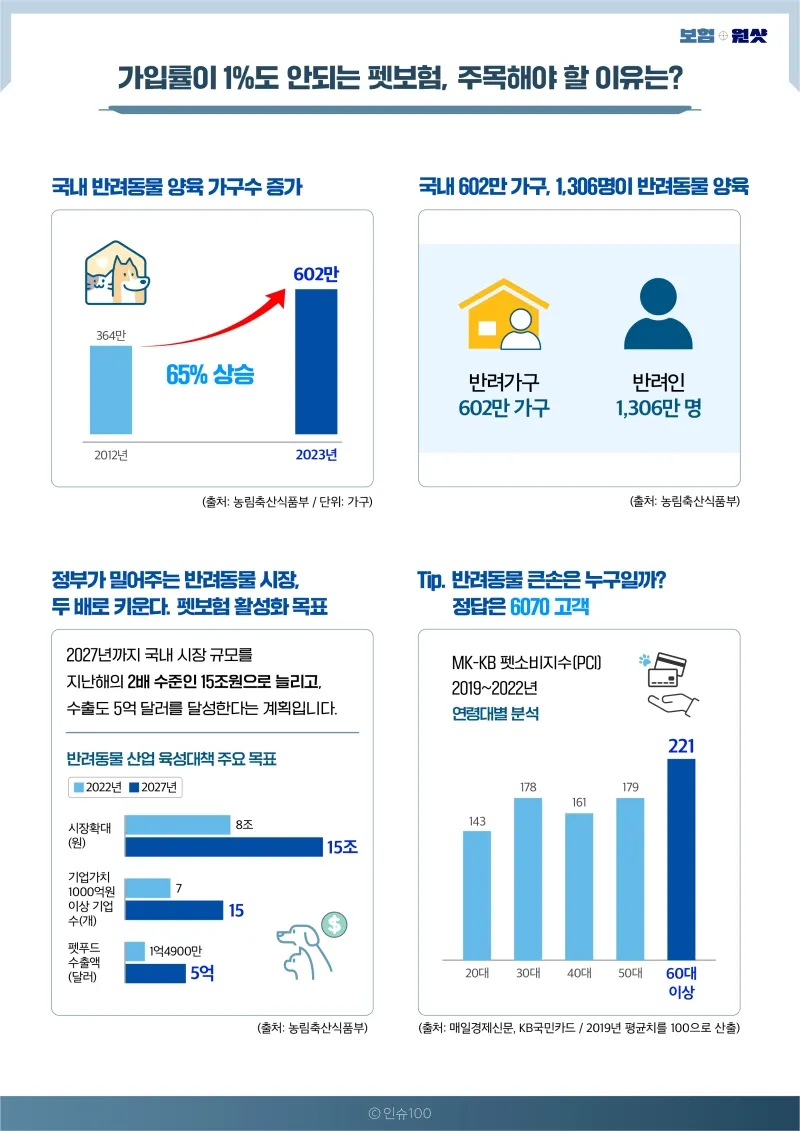 그로 인해 반려동물 보험 수요는 증가하고 있지만, 실제 가입률은 낮은 상황입니다.